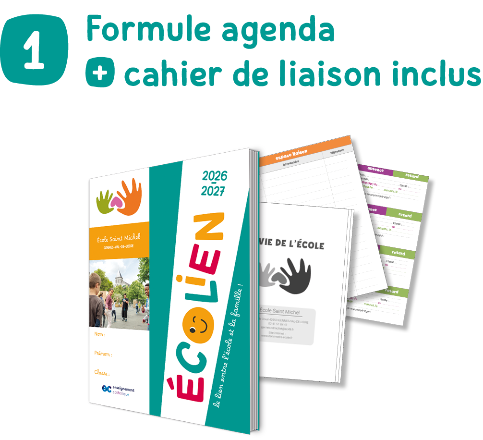ÉCOLIEN renforce le sentiment d'appartenance de notre école grâce à sa couverture personnalisée. Le livret "la vie de l'école" permet aussi aux familles d'avoir à disposition toute l'année notre projet éducatif.